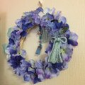 こちらはブルー系のアートフラワーの紫陽花とマム、スケルトンリーフを使い制作いたしました。
