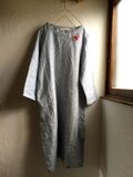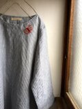 mさまご予約品 リネン100 シンプルAラインワンピース ブルーストライプ