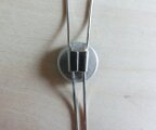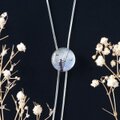 夜明けの電柱を描いた絵(原画)を樹脂でとじこめたループタイです。