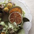 ドライフラワーのアジサイとドライオレンジのリースです。