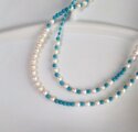 天然のターコイズ(トルコ石)とパールを組み合わせたネックレス。