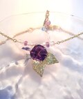 透明感のある紫色のアサガオと、小さなアメジストでネックレスにしました。