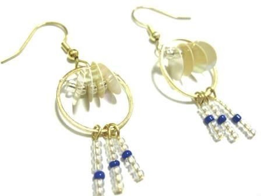 素 材:ゴールドフープ、スパンコールシェル、ビーズ