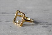 このリングは、四角いフレームの中に1粒パールをポイントにし、シンプルですっきりしたデザインに仕上げました。