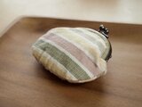 手で紡いだ木綿の糸を、草木で染め、手織りした布のがま口です。