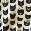 ダブルガーゼでできたオフホワイト地にブラックの猫ちゃん柄の