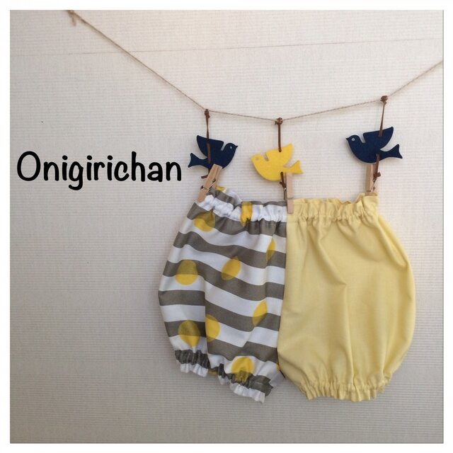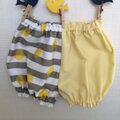 北欧調のイエローのドットとグレーのストライプ柄とイエロー生地のかぼちゃパンツです♪