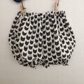 オフホワイト寺にブラックのゆるい猫ちゃん柄のかぼちゃパンツです♪