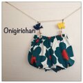 北欧調のホワイト地にグリーンのフラワー柄のかぼちゃパンツです♪