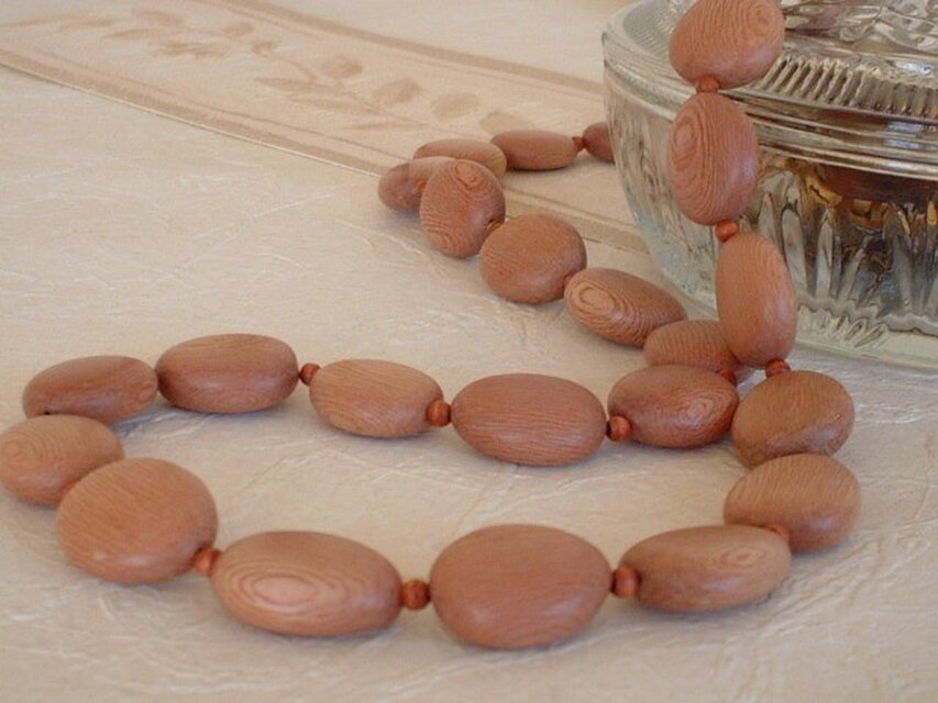 木目が美しく浮き出ているピンクのウッドビーズです。