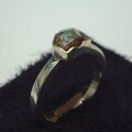 シルバーのレインボーガーネットリングです。 シンプルに幅2mm強のリングに石の枠を造り、 中央にレインボーがネットをセットしたデザインです。 石は天然の結晶をそのまま使っていますので石の枠は石に合わせて造っています。 極端なサイズ変更は出来ません。新たにお造りすることになりますが、その場合石は写真の物とは違う物になりますのでご了承下さい。