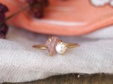 原石のピンクトルマリンとパールのリング w340