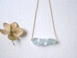 ひんやりと冷たい氷のかけらを連想させる、淡い水色のアクアマリンのラフロックを3粒つなぎ、ブレスレットに致しました。まるでアイスランドの氷河湖に浮かぶ氷のようなブルー、削り取られた氷のような光と質感が暑い季節に涼しげです。いつも見える手元に氷のかけらを飾ってみませんか? アジャスターのエンド石にも小さなアクアマリンを一粒ぶら下げてアクセントに。