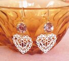 8㎜の、淡い落ち着いたピンクのスワロフスキー(カラー:ヴィンテージローズ)とハートのレース金具を合わせたピアスです。
