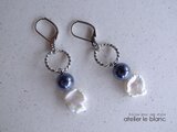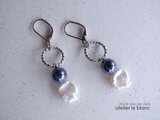 天然ケシパールの玉虫色を帯びたホワイトと、ネイビーパールのビーズに、