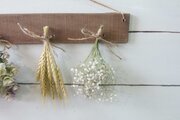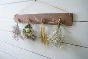 自家製ドライフラワーを古材風に加工した板にセットしました。