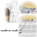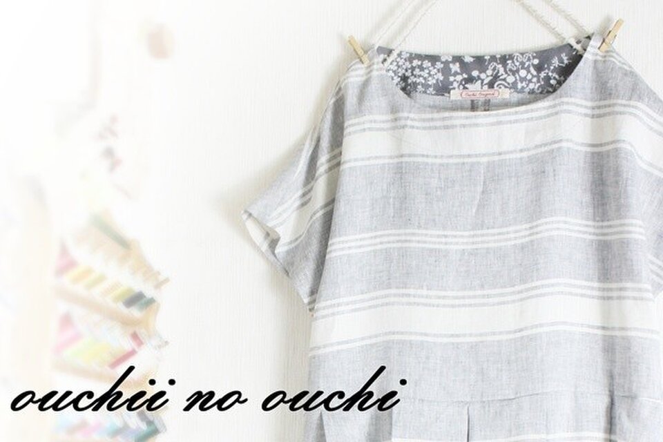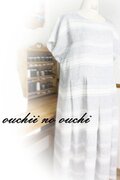 涼し気なサンドグレー&ホワイトのボーダーでしっとりリネン100でお作りしましたドルマンスリーブタックロングワンピースです。