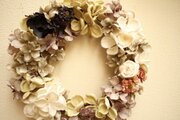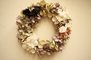 質感の異なったアジサイのアーティフィシャルフラワーを使っています。