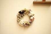 アーティフィシャルフラワーと一輪のプリザーブドローズのリースです。