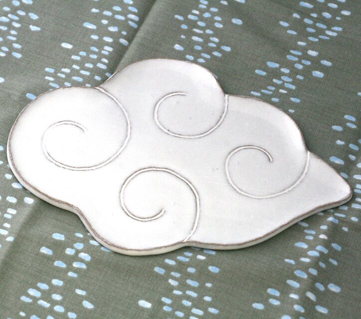 陶器:もくもく雲のブローチもくもく感がとても素敵な雲ブローチです♡!jam-yokoさまの手描きの絵から作られた丁寧な作品です(*^^*)。白もベタッと白いのでは無く手作り感が味を出しています。スムーズなお取引もありがとうございました♡。
