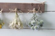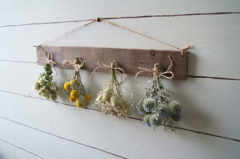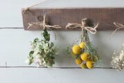 自家製ドライフラワーを古材風に加工した板にセットしました。