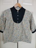 青い小花柄 スタンドカラーブラウス