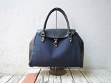 神戸ORZO ヌメ革×8号帆布ボストンBAG(M) ネイビー×ネイビー