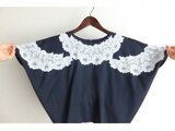 アンティークなニュアンスの襟形コードレースを贅沢に使い、デザイン性高く配置しました。