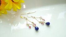 ラピスラズリ*ピンクトルマリン*デザインピアス14kgf