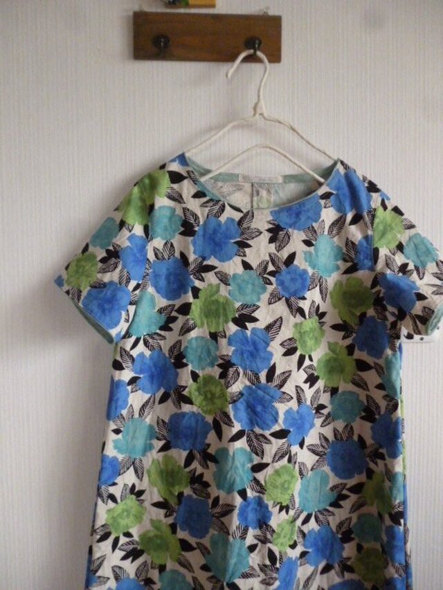 ・お色は生成り地にブルーや黄緑の大きな花がプリントされた素敵な生地です。