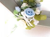 ブルートーンのローズを基調に、きらきら輝くアートフラワーなどで清楚な雰囲気にまとめました。