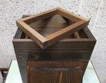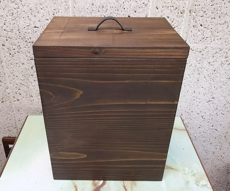 国産の杉材で作った、アンティークなダストボックスです。