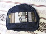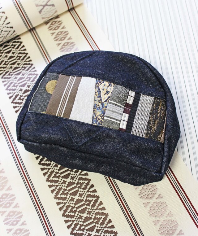 その博多織を切り替え部分に使用した、博多織と国産デニムのポーチです。