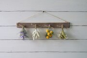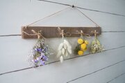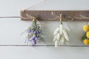 自家製ドライフラワーを古材風に加工した板にセットしました。