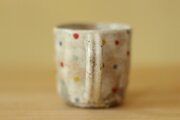 信楽の白土に白化粧を施しカラフルに小さいドットを絵付けしました。