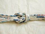 ブルーを中心としたろうけつ染めの多色糸とオフホワイトの糸を組み合わせた夏にぴったりの色合いの紐です。