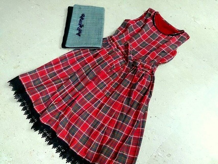 マドモアゼル・チェック赤★コットン100%ワンピ★秋冬はジャンパースカートで!