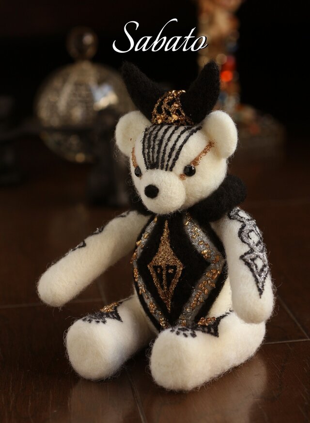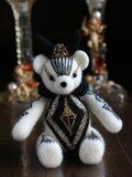 キングのような風格をもつくま。ゴールドとブラックで装飾された衣装も頭上の冠も威風堂々と、威厳たっぷりにその位階の高さを示しています。少し大ぶりななサイズも存在感を表しています。