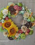 明るく咲くひまわり、そしてフルーツや木の実をとりこんで、明るく楽しい雰囲気になりますようにと思いながら 制作いたしました。