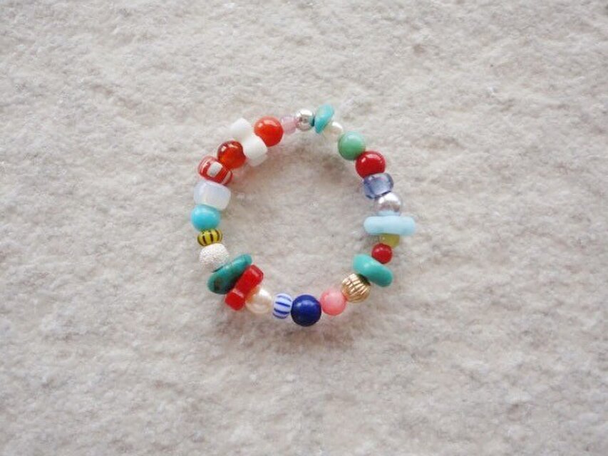 マルチカラーのビーズブレスと珊瑚のリングが届きました。繊細で可愛らしくモノトーンの服が多い私に喜びを与えてくれそうです。またお揃いのオマケまで・・・ありがとうございます。早々の発送やメールにもお人柄が伝わりました。またよろしくお願いします。
