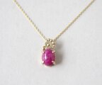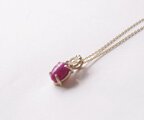 未処理の不透明タイプのぷっくりツヤツヤのルビーを少し東洋的でボタニカルなイメージのK10製ネックレスに仕立てました。ルビーがハッとするような深ピンク色で、プチペンダントの大きさなのに存在感があります。