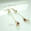 シックで落ち着いたカラーのウィスキークォーツに、ビアクォーツ、ワイン色のガーネットを合わせてピアスを作りました。(^ー^)