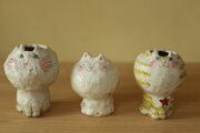 ”わけあり”粉引きねこの花入れ。