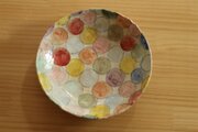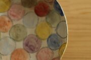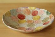 信楽の白土に白化粧を施しカラフルドットを描きました。