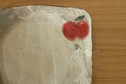 信楽の白土に白化粧を施し3色のりんごを描きました。