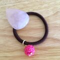 ピンク色がかわいらしいマダガスカル産ローズクウォーツのヘアゴムです。