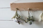 自家製ドライフラワーを古材風に加工した板にセットしました。