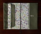 届きました。 とても、綺麗な色のカバーで裏地も モダンでした。刺繍の蝶々がピッタリです♪ 今まで、お願いしたカバーと、イメージが違いますが、 明るい爽やかな作品で、大変気に入りました。 ありがとうございました