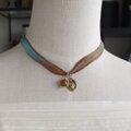 シルクシフォンリボンは、ブルー〜グリーン〜ブラウンのグラデーションになっていて、アフリカン・エスニックな組み合わせカラーです。