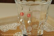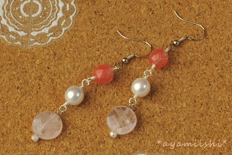 淡いピンク色の天然石ローズクォーツ、ヴィンテージパール、チェリークォーツを使いました。